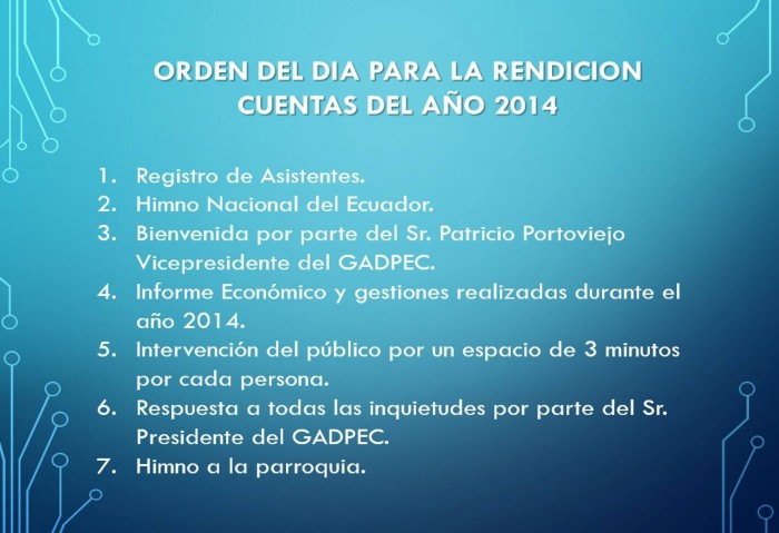 RENDICIÓN DE CUENTAS DEL AÑO 2014 EN LA CASA PARROQUIAL EL DÍA SÁBADO 28 DE FEBRERO DEL 2015 A PARTIR DE LAS 16H00